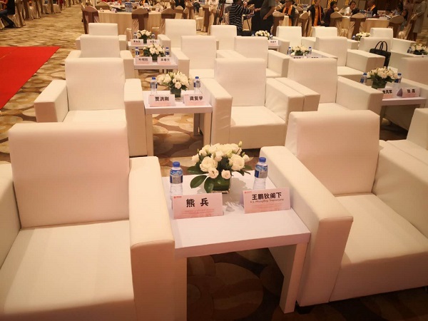 泰国前总理王鹏狄先生(泰名蓬贴?帖甘扎纳,曾任泰国副总理、教育部长、能源部长、司法部长等)为甘肃安卓工程技术有限公司董事长龚复学先生颁奖。